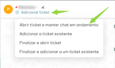 * Disponível tanto para **abrir ticket novo** quanto para **abrir ticket mantendo chat em andamento** pelo **Adicionar Ticket** do chat.