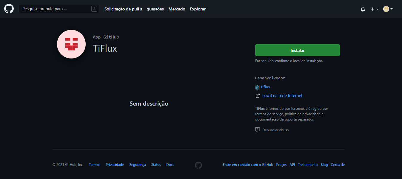 Após clicar no ícone, você será encaminhado para o GitHub, onde poderá instalar a aplicação da Tiflux.